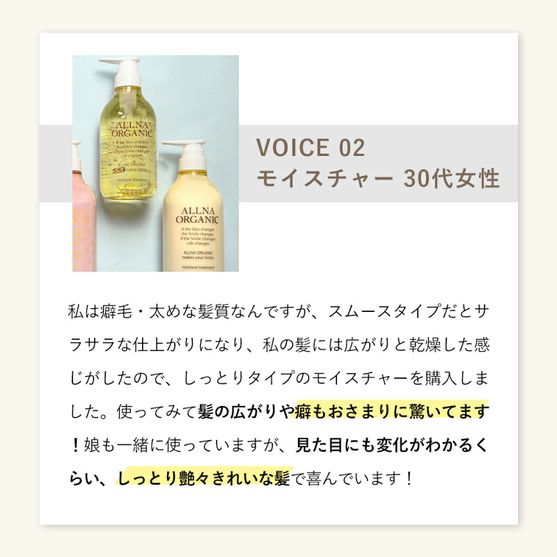 他にも多くの方から喜びの声が寄せられています。日々のヘアケアに悩むすべての方に、オルナオーガニックの素晴らしさを体験していただきたい。彼女たちのように、あなたも輝く髪を手に入れてみませんか?