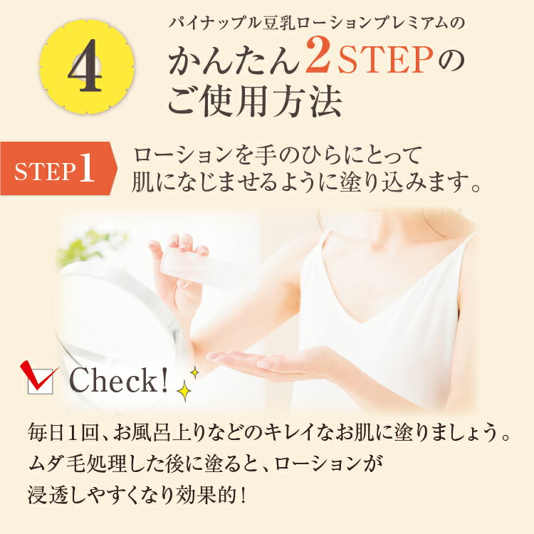 このローションは、肌に優しい天然成分のパイナップル果実と豆乳発酵液をメインに使用しています。この二つの成分が素晴らしいシナジーを発揮し、お肌に潤いと透明感を与えるんです💖全身に使えるので、顔だけでなく、ボディケアにも最適。お肌がふっくらとしたモチモチ感を実感できる、画期的な美容液ローションです。あなたもこの一本で、全身しっとり、すべすべの優しい肌触りを手に入れましょう!