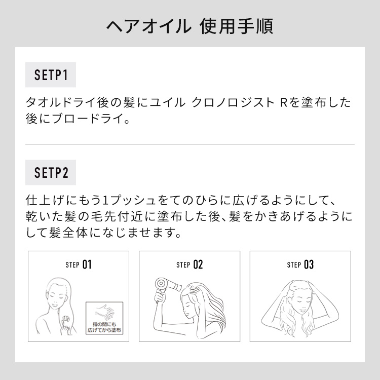 - 「30歳 女性 ⭐⭐⭐⭐⭐ 使い始めて髪がとても柔らかくなり、触れる度に幸せな気持ちになります。」