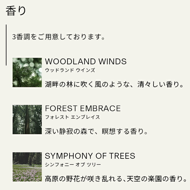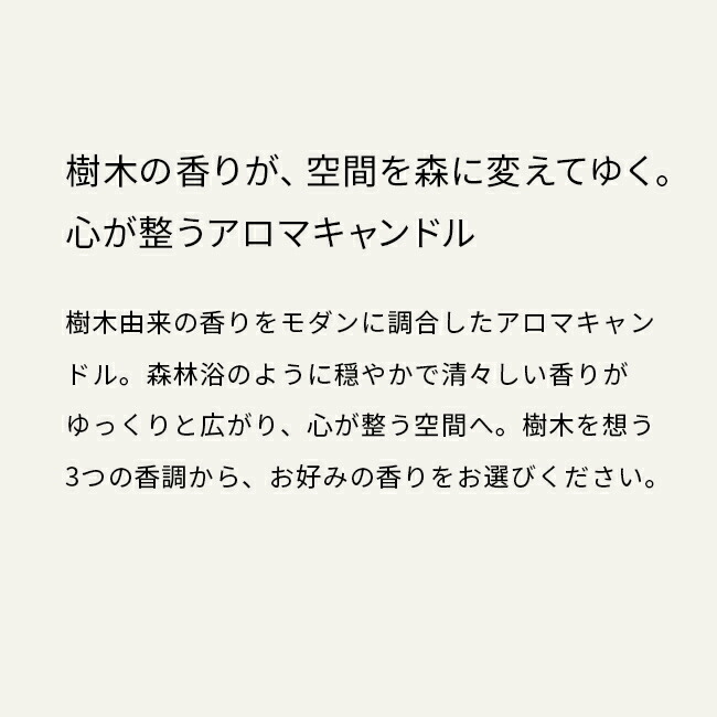 キャンドルを灯すと、部屋中が心地よい香りに包まれ、まるで森の中にいるかのような感覚を味わえます。✨ リビングに、バスルームに、またベッドルームに置いて、一日の終わりに心と体を癒してみてはいかがでしょうか。