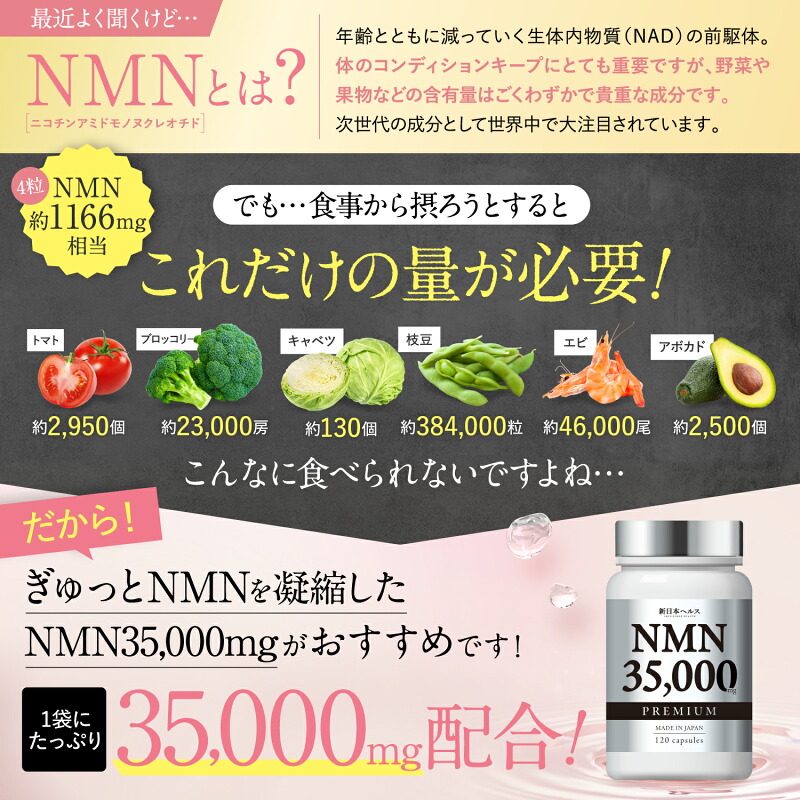 【若さの秘訣を手に入れて】NMN35,000mg配合美容サプリメント